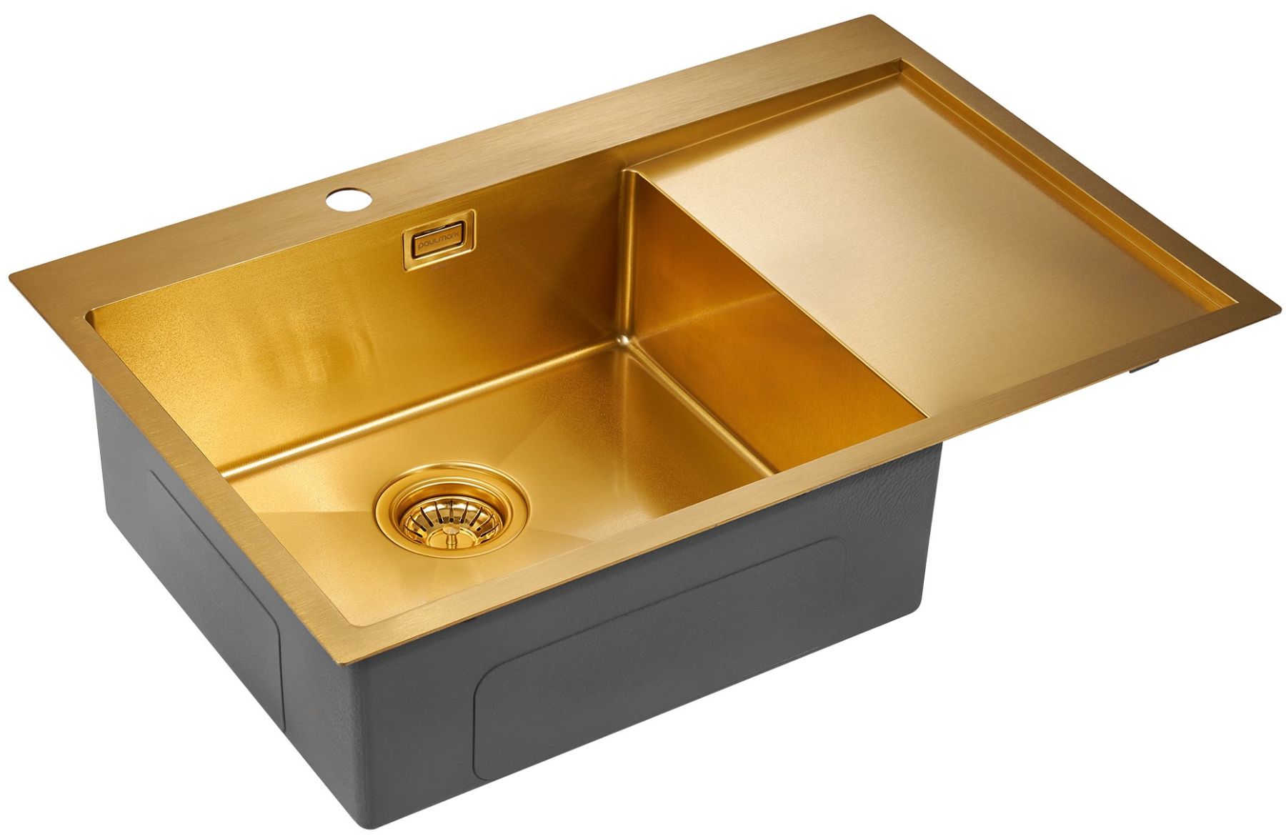 Мойка кухонная из нержавеющей стали, артикул PM807851-BGL304-ая аустенитная нержавеющая сталь имеет низкое содержание углерода. В составе мойки содержится 18% хрома и 8% никеля, что делает данную мойку из нержавеющей стали не подверженной деформации и обеспечивает прекрасные эксплуатационные характеристики.Мойки ELDE в оттенках BG и GM имеют прочное PVD покрытие, которое нанесено на нержавеющую сталь. Оно особенно устойчиво к появлению царапин и истиранию, не содержит микротрещин и является экологически чистым.Имеет функциональное плоское крыло;Имеет шумопоглощающее покрытие Stille® на внешней стороне чаши;