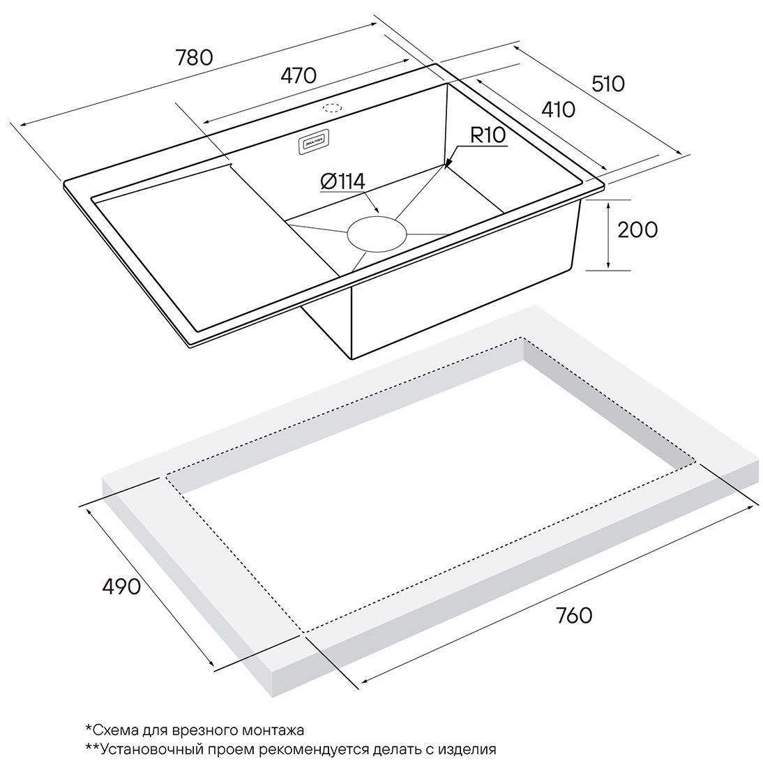 Мойка кухонная Paulmark Elde PM807851-GMR правая воронёная сталь купить