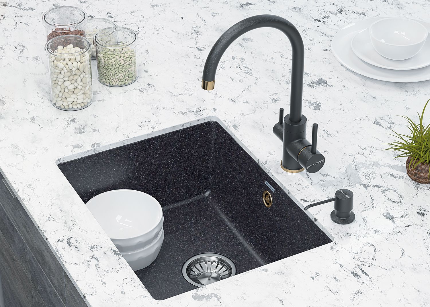 IT-GRANIT – это композитный материал, состоящий на 80% из фракций калиброванной натуральной гранитной крошки и на 20% из связующих композитных смол. Материал кухонных моек из IT-GRANIT имеет на ощупь структуру, схожую с поверхностью камня, но в то же время по прочности и износостойкости превосходит натуральный гранит.Эргономика каждой модели мойки из IT-GRANIT разработана по специальной усовершенствованной технологии и продумана до мелочей для максимального удобства в ежедневном использовании. Мойки из IT-GRANIT изготовлены из химически неактивных материалов, благодаря чему они не вступают в реакцию с продуктами и полностью безопасны для здоровья человека.Фракции натурального гранита, которые входят в состав мойки, твёрдые и тугоплавкие, и поэтому изделия из IT-GRANIT максимально устойчивы к перепадам температур и механическим повреждениям: сколам, царапинам. Непористая структура материала IT-GRANIT обеспечивает легкость в уходе за мойкой.При производстве моек Paulmark из IT-GRANIT используется инновационная технология пигментации. Это позволяет добиться однородности цвета по всей толщине мойки. Помимо этого, кухонная мойка из искусственного гранита IT-GRANIT не потеряет свой первоначальный цвет за время использования. Она не выгорает даже при длительном воздействии солнечных лучей. Контроль производственного процесса на каждом этапе позволяет обеспечить высокий уровень качества моек Paulmark из искусственного гранита IT-GRANIT.