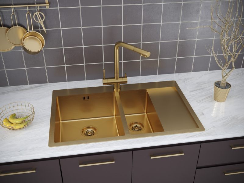 Мойки Liga в оттенке GM имеeт прочное PVD покрытие, которое нанесено на нержавеющую сталь. Оно особенно устойчиво к появлению царапин и истиранию, не содержит микротрещин и является экологически чистым.Функциональное плоское крыло; Готовое отверстие для кухонного смесителя.Имеет шумопоглощающее покрытие Stille® на внешней стороне чаши;