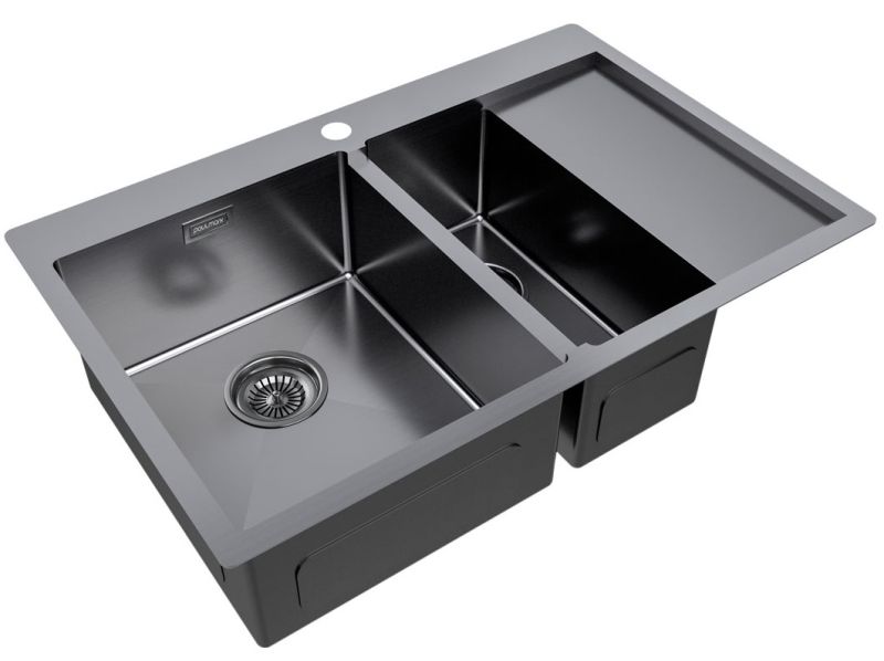 Мойка кухонная Paulmark Kroner PM227851-GML левая воронёная сталь