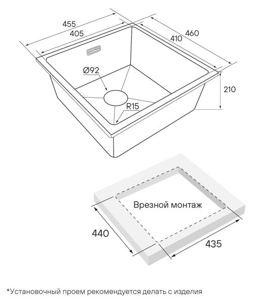 Мойка создана как для современного способа монтажа под столешницу, так и для классического врезного монтажа.