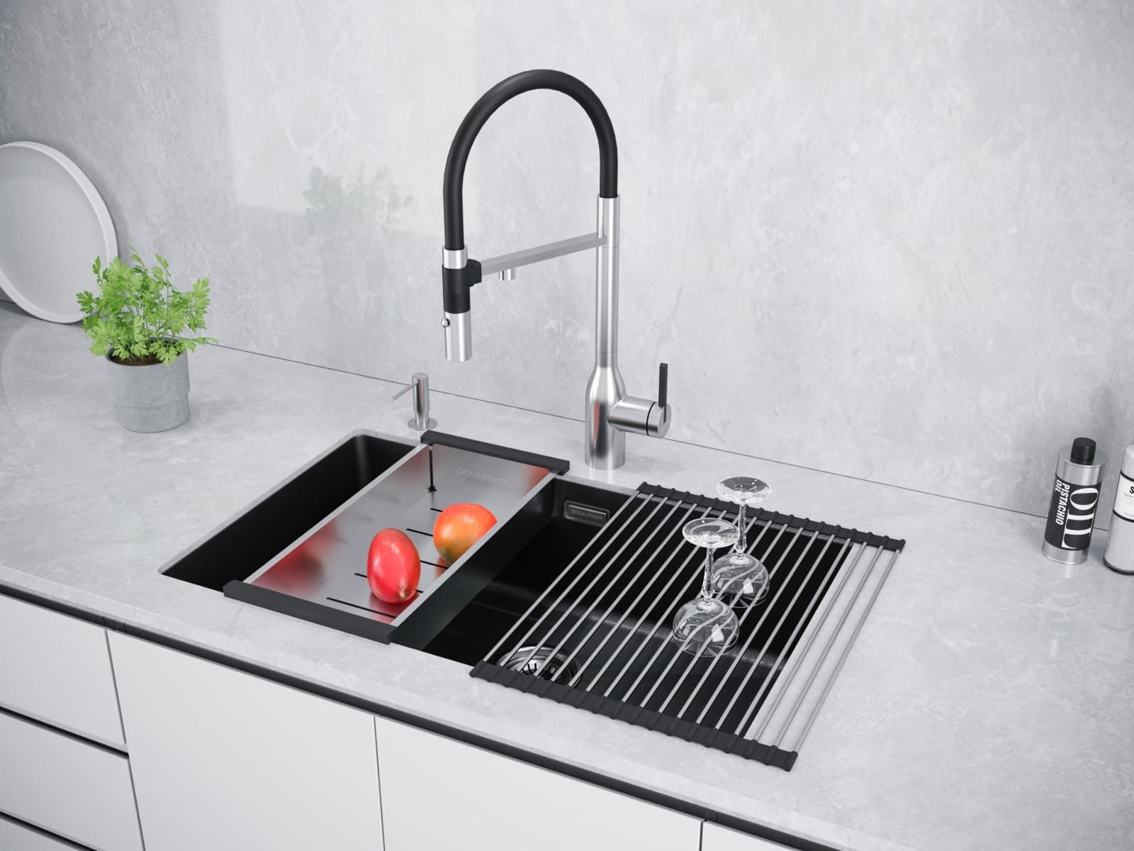 IT-GRANIT – это композитный материал, состоящий на 80% из фракций калиброванной натуральной гранитной крошки и на 20% из связующих композитных смол. Материал кухонных моек из IT-GRANIT имеет на ощупь структуру, схожую с поверхностью камня, но в то же время по прочности и износостойкости превосходит натуральный гранит.Эргономика каждой модели мойки из IT-GRANIT разработана по специальной усовершенствованной технологии и продумана до мелочей для максимального удобства в ежедневном использовании. Мойки из IT-GRANIT изготовлены из химически неактивных материалов, благодаря чему они не вступают в реакцию с продуктами и полностью безопасны для здоровья человека.Фракции натурального гранита, которые входят в состав мойки, твёрдые и тугоплавкие, и поэтому изделия из IT-GRANIT максимально устойчивы к перепадам температур и механическим повреждениям: сколам, царапинам. Непористая структура материала IT-GRANIT обеспечивает легкость в уходе за мойкой.При производстве моек Paulmark из IT-GRANIT используется инновационная технология пигментации. Это позволяет добиться однородности цвета по всей толщине мойки. Помимо этого, кухонная мойка из искусственного гранита IT-GRANIT не потеряет свой первоначальный цвет за время использования. Она не выгорает даже при длительном воздействии солнечных лучей. Контроль производственного процесса на каждом этапе позволяет обеспечить высокий уровень качества моек Paulmark из искусственного гранита IT-GRANIT.