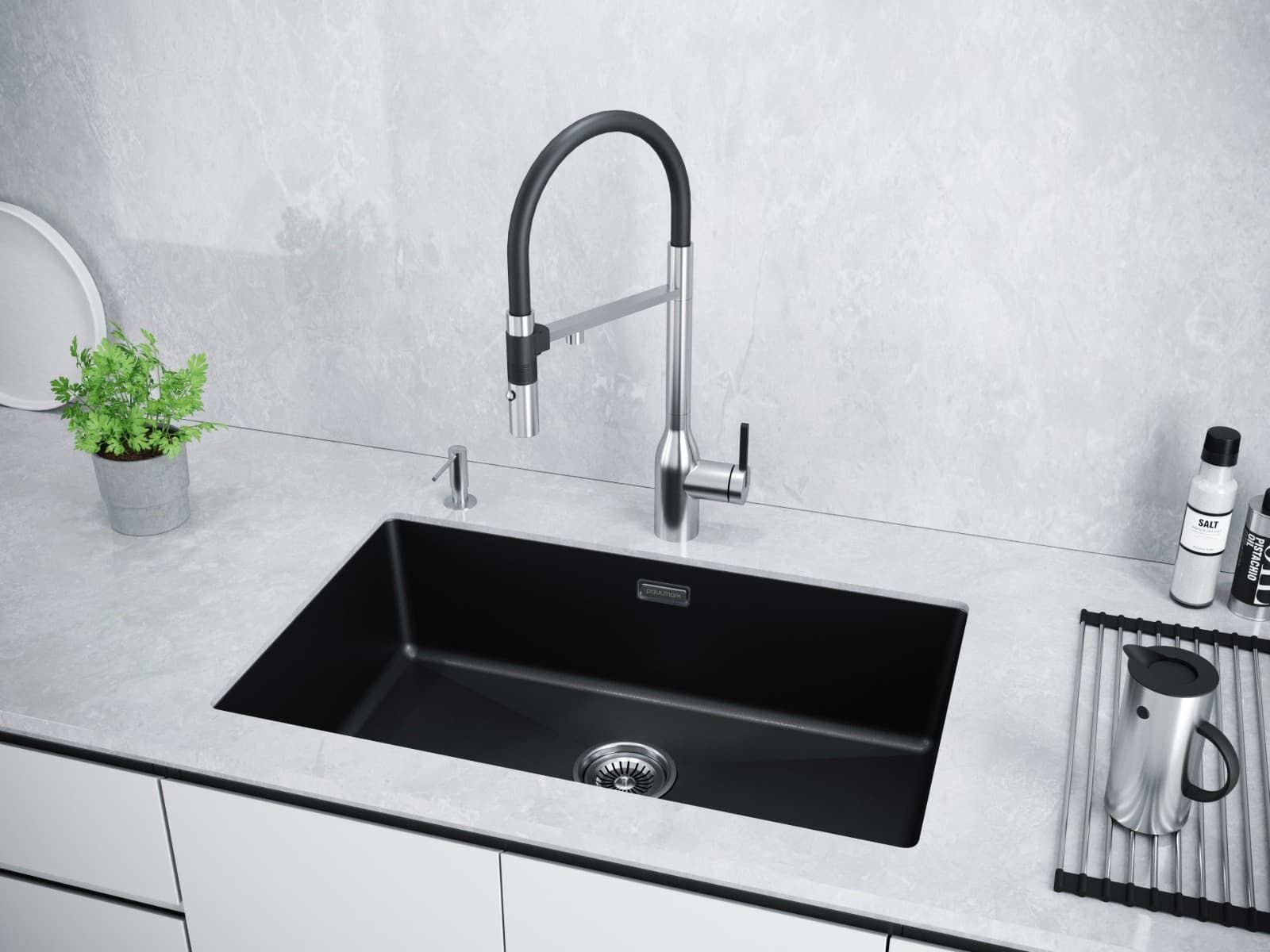 IT-GRANIT – это композитный материал, состоящий на 80% из фракций калиброванной натуральной гранитной крошки и на 20% из связующих композитных смол. Материал кухонных моек из IT-GRANIT имеет на ощупь структуру, схожую с поверхностью камня, но в то же время по прочности и износостойкости превосходит натуральный гранит.Эргономика каждой модели мойки из IT-GRANIT разработана по специальной усовершенствованной технологии и продумана до мелочей для максимального удобства в ежедневном использовании. Мойки из IT-GRANIT изготовлены из химически неактивных материалов, благодаря чему они не вступают в реакцию с продуктами и полностью безопасны для здоровья человека.Фракции натурального гранита, которые входят в состав мойки, твёрдые и тугоплавкие, и поэтому изделия из IT-GRANIT максимально устойчивы к перепадам температур и механическим повреждениям: сколам, царапинам. Непористая структура материала IT-GRANIT обеспечивает легкость в уходе за мойкой.При производстве моек Paulmark из IT-GRANIT используется инновационная технология пигментации. Это позволяет добиться однородности цвета по всей толщине мойки. Помимо этого, кухонная мойка из искусственного гранита IT-GRANIT не потеряет свой первоначальный цвет за время использования. Она не выгорает даже при длительном воздействии солнечных лучей. Контроль производственного процесса на каждом этапе позволяет обеспечить высокий уровень качества моек Paulmark из искусственного гранита IT-GRANIT.