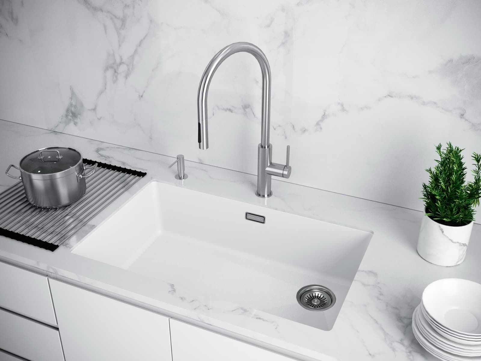 Материал мойки не нужно герметизировать, и, поскольку он не пористый, то он максимально устойчив к окрашиванию.Телескопический сифон