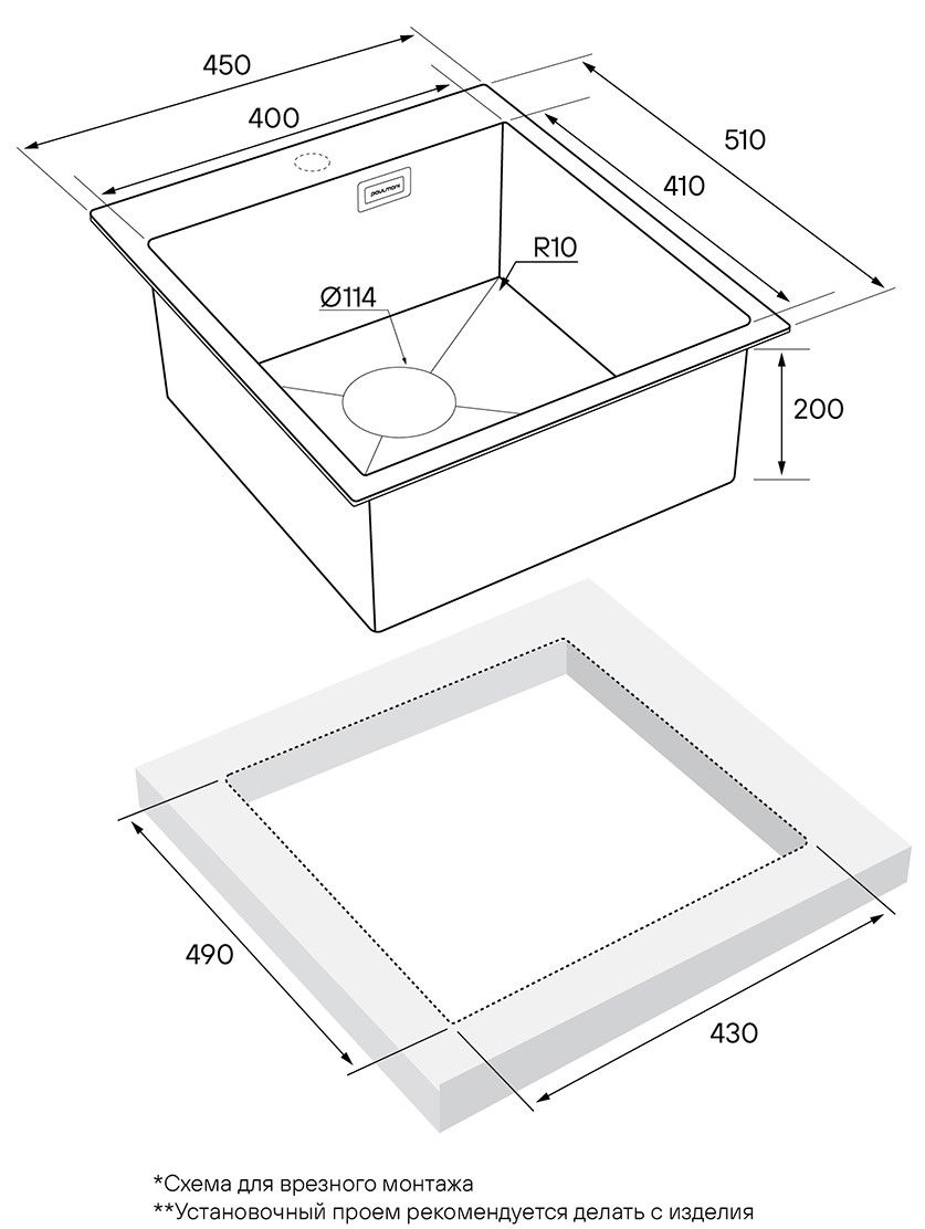 Монтаж:встраиваемая сверху
