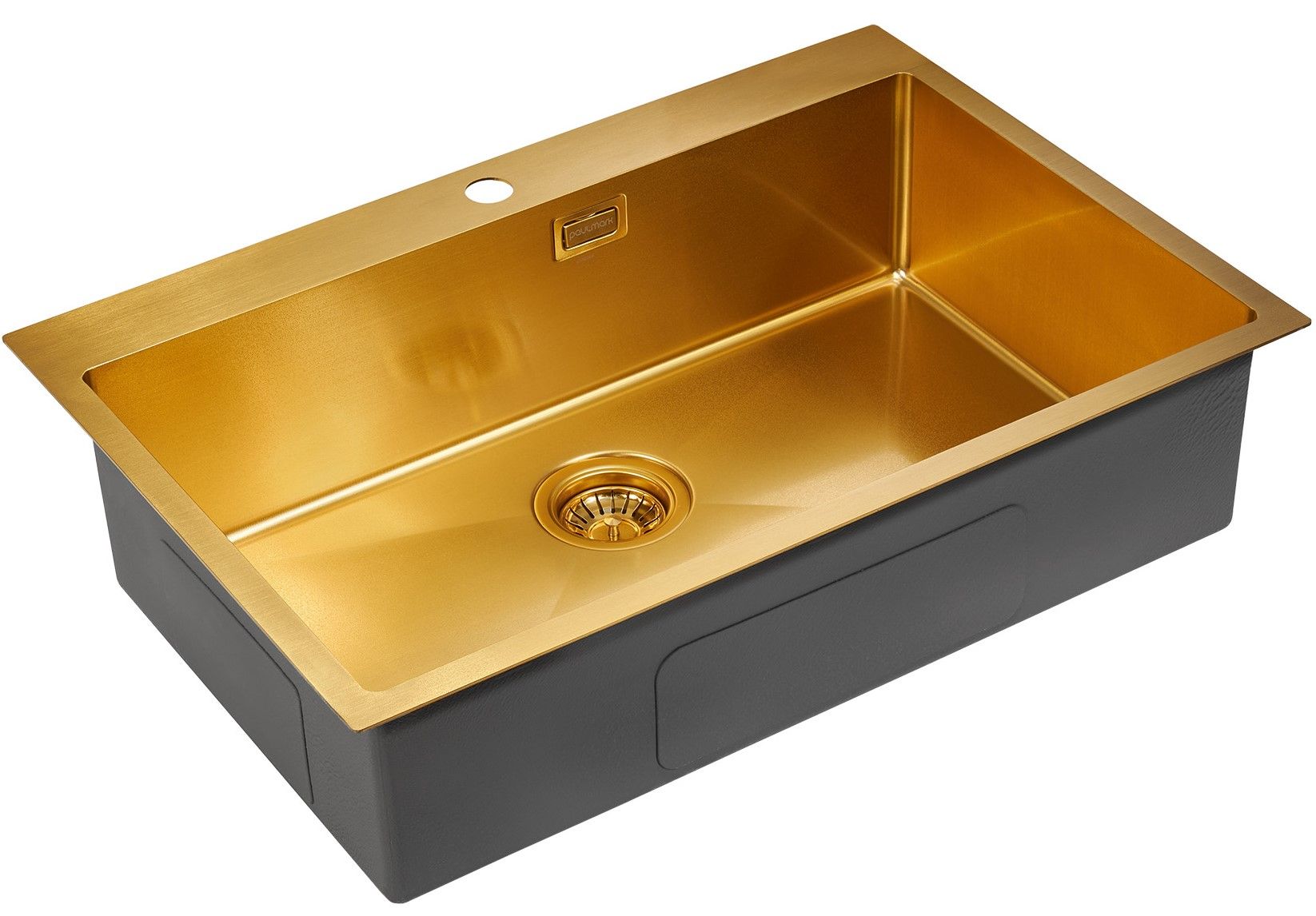 Мойка кухонная из нержавеющей стали, артикул PM807551-BG304-ая аустенитная нержавеющая сталь имеет низкое содержание углерода. В составе мойки содержится 18% хрома и 8% никеля, что делает данную мойку из нержавеющей стали не подверженной деформации и обеспечивает прекрасные эксплуатационные характеристики.Мойки SAAR в оттенках BG и GM имеют прочное PVD покрытие, которое нанесено на нержавеющую сталь. Оно особенно устойчиво к появлению царапин и истиранию, не содержит микротрещин и является экологически чистымНе подвержена деформации;