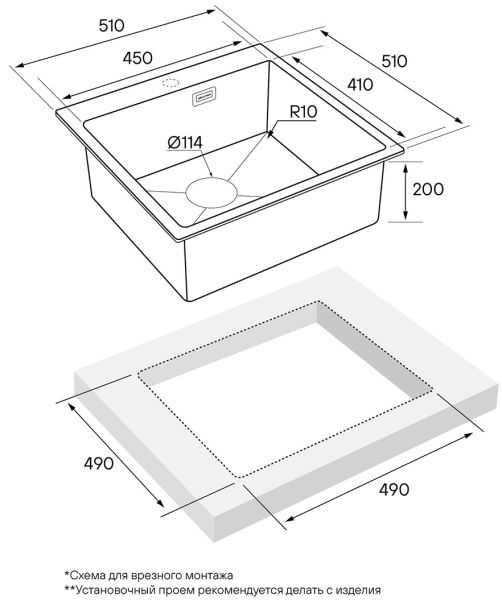 Монтаж:встраиваемый сверху