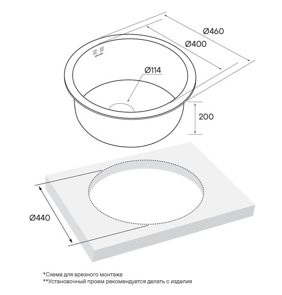 Монтаж:встраиваемая снизу