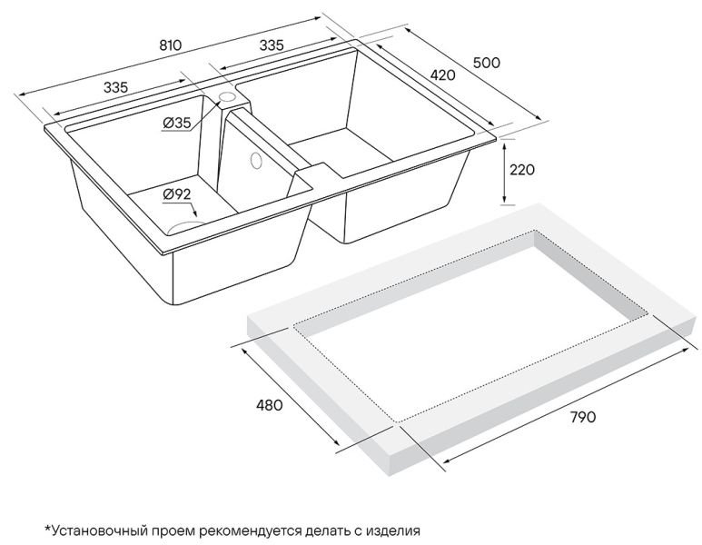 • Отверстия под смеситель: