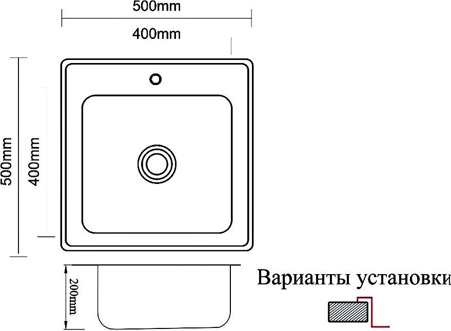 • Отверстия под смеситель: