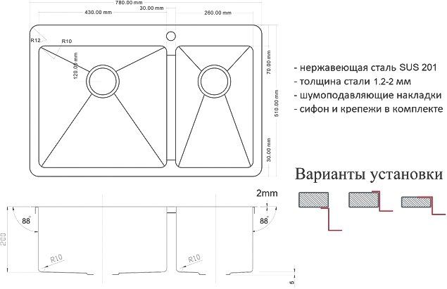 Мойки кухонные серии Zorg производятся из высококачественной легированной нержавеющей стали марки SUS 304 (толщина стали 1 мм). Характерными особенностями кухонных моек данной серии являются прямые углы моечной чаши и четкие линии поверхности мойки, которые несомненно придутся по вкусу обладателям кухни в стиле хай-тек. Матовая поверхность мойки достигается благодаря применению брашинга (шлифование специальными щётками). Встроенная система крепления для аксессуаров позволит использовать всевозможные аксессуары Zorg (разделочные доски, поддоны и коландеры), превращая поверхность мойки в рабочую зону и обеспечивая дополнительное пространство на кухне.