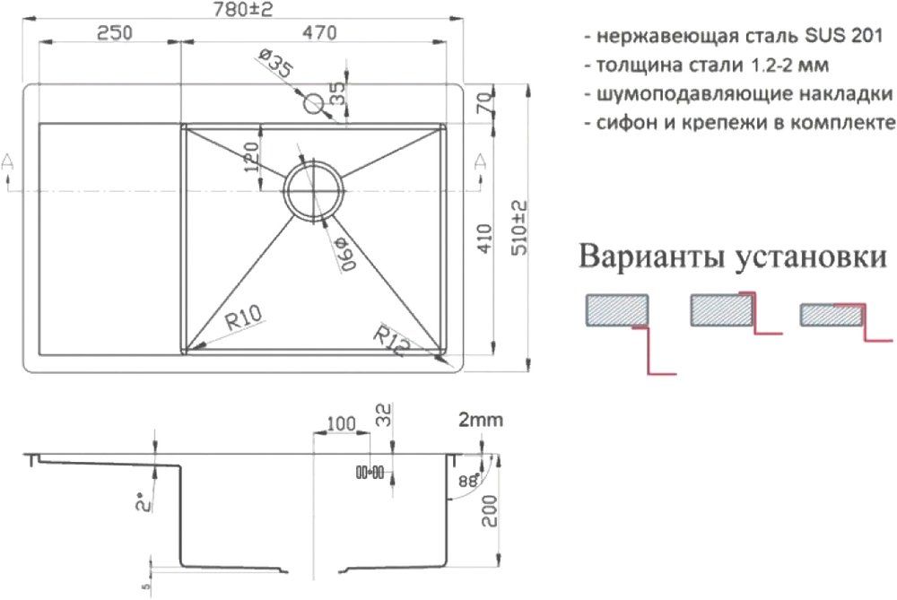 Монтаж:встраиваемая сверху
