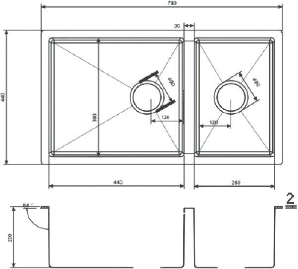Мойка кухонная Zorg Light ZL R 780-2-440