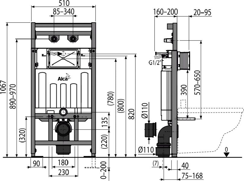 • Для подвесных чаш с интервалом крепления до 420 мм и стоковым коленом Ø90/110