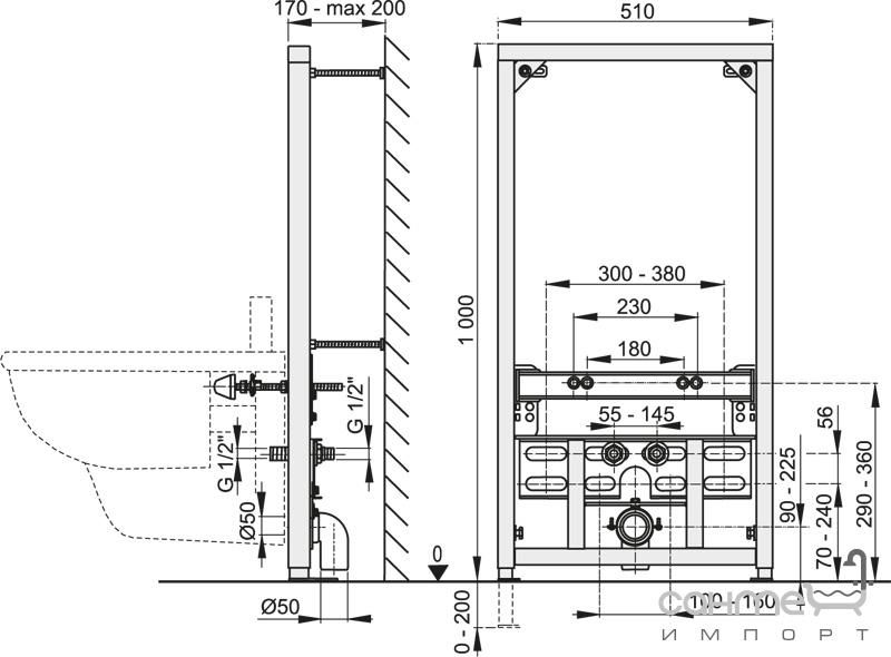 • Для подвесного биде с интервалом крепления 180 мм или 230 мм