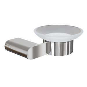 Подвесная мыльница BLISS в хроме с матовым стеклом и корпусом из SUS 304. Настенное крепление освобождает столешницу, а антиследовое покрытие делает уход легким.
