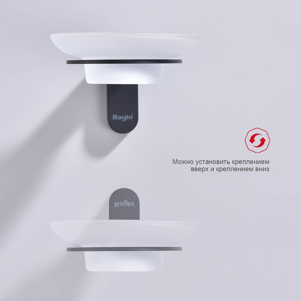 Raglo R300.02.09 Мыльница стеклянная с держателем. Форма округлая, цвет - графит, полуматовое покрытие. Крепление в комплекте.