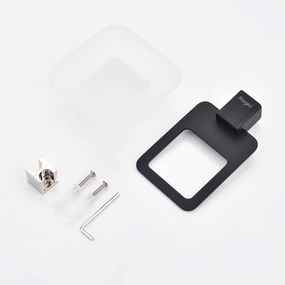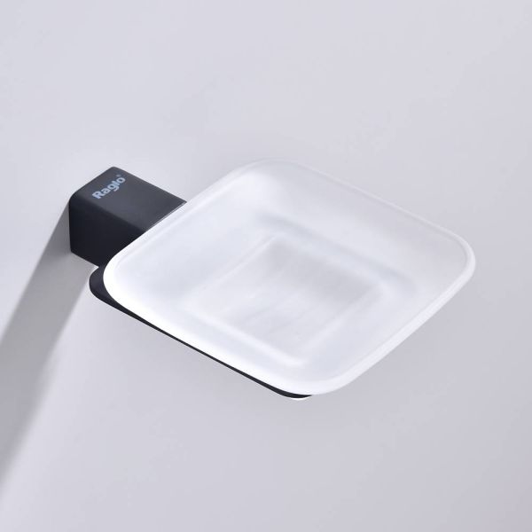 Raglo R301.02.06 Мыльница стеклянная с держателем. Форма квадратная, цвет - черный, полуматовое покрытие. Крепление в комплекте.