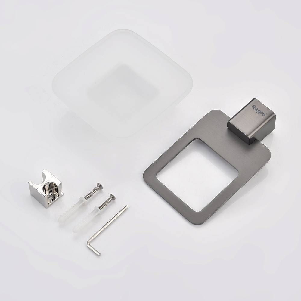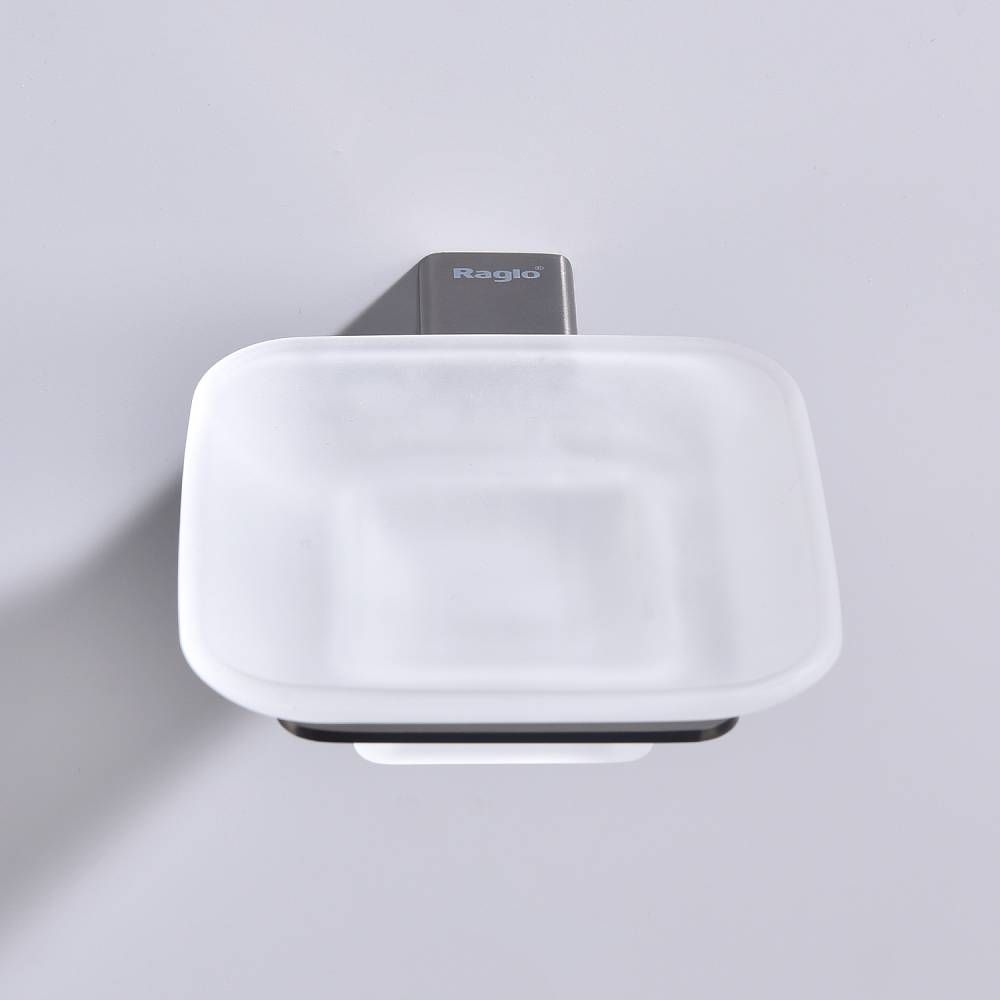 Raglo R301.02.09 Мыльница стеклянная с держателем. Форма квадратная, цвет - графит, полуматовое покрытие. Крепление в комплекте.