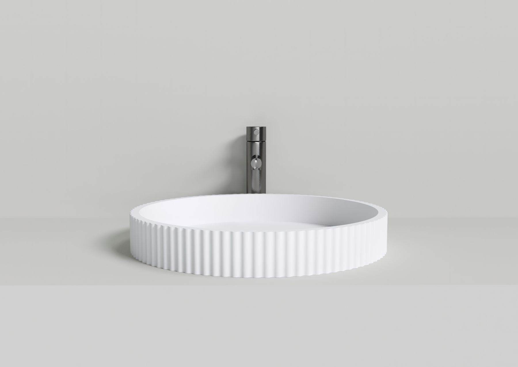Раковина Fanello воплощает собой идеальный круг, очерченный тонкими краями с элегантной ребристой поверхностью.