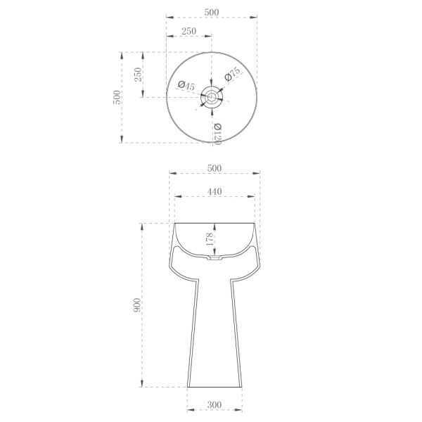 Напольная раковина ABBER Kristall AT2706White-Onyx 50см белый/чёрный
