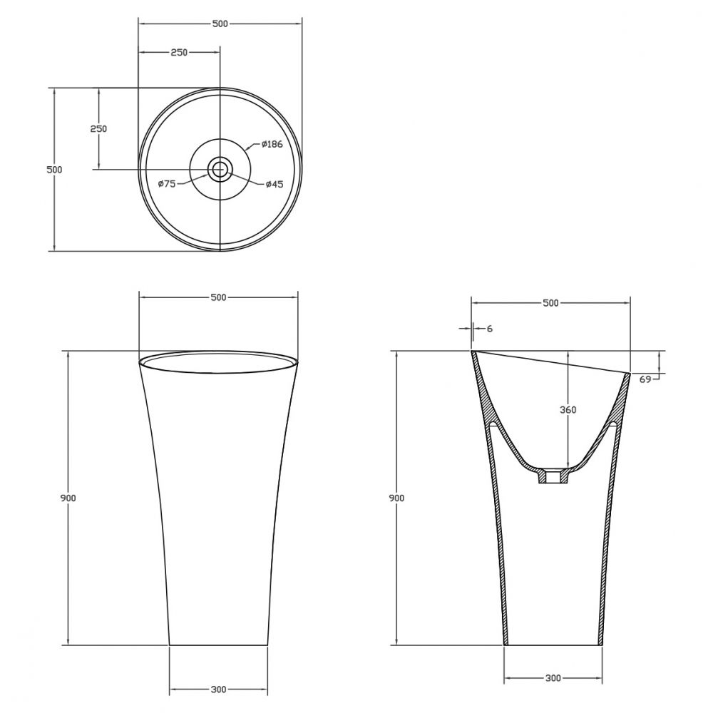 Напольная раковина ABBER Stein AS2509 50см белый матовый купить