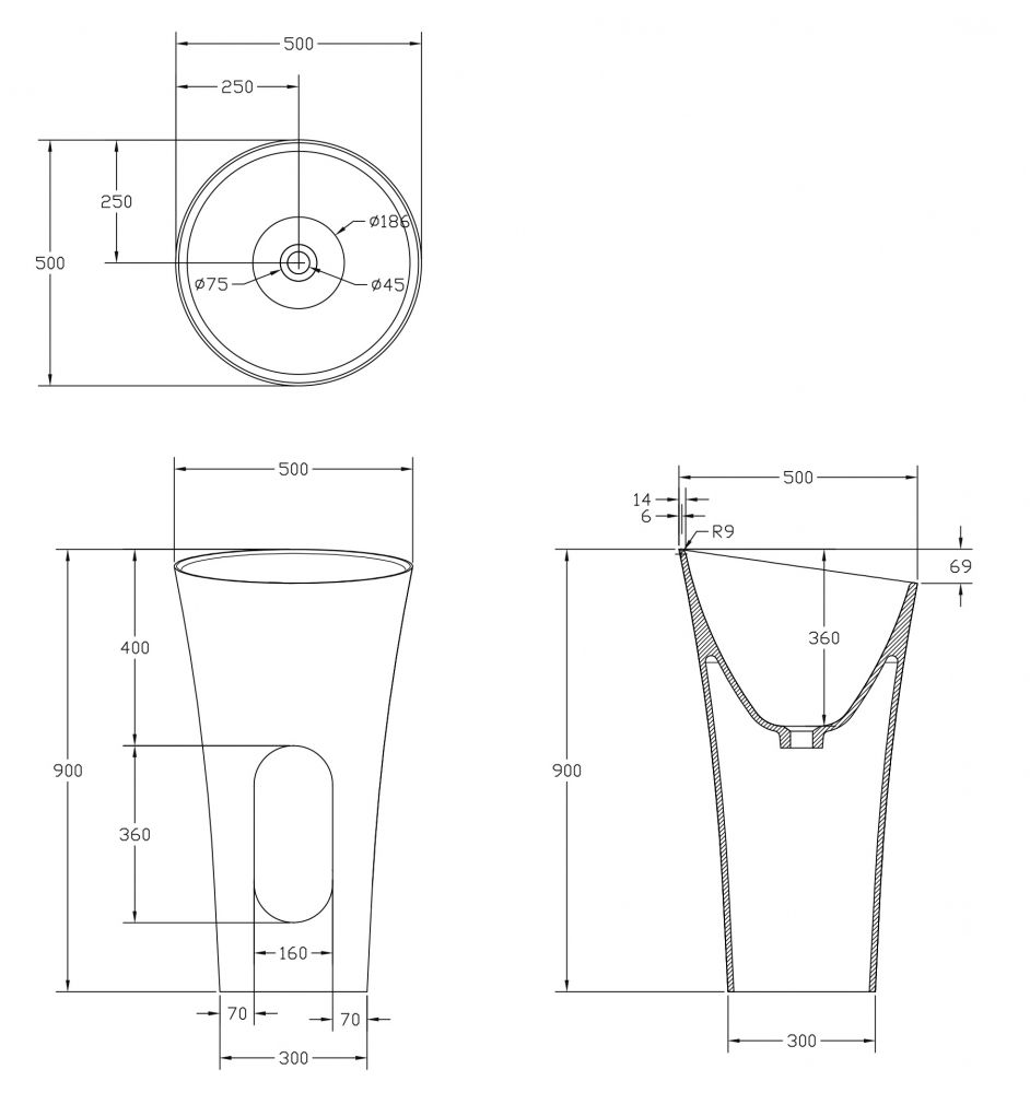 Напольная раковина ABBER Stein AS2509-H 50см белый матовый купить