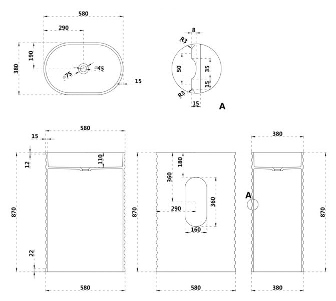Напольная раковина ABBER Stein AS2550-H 58см белый матовый