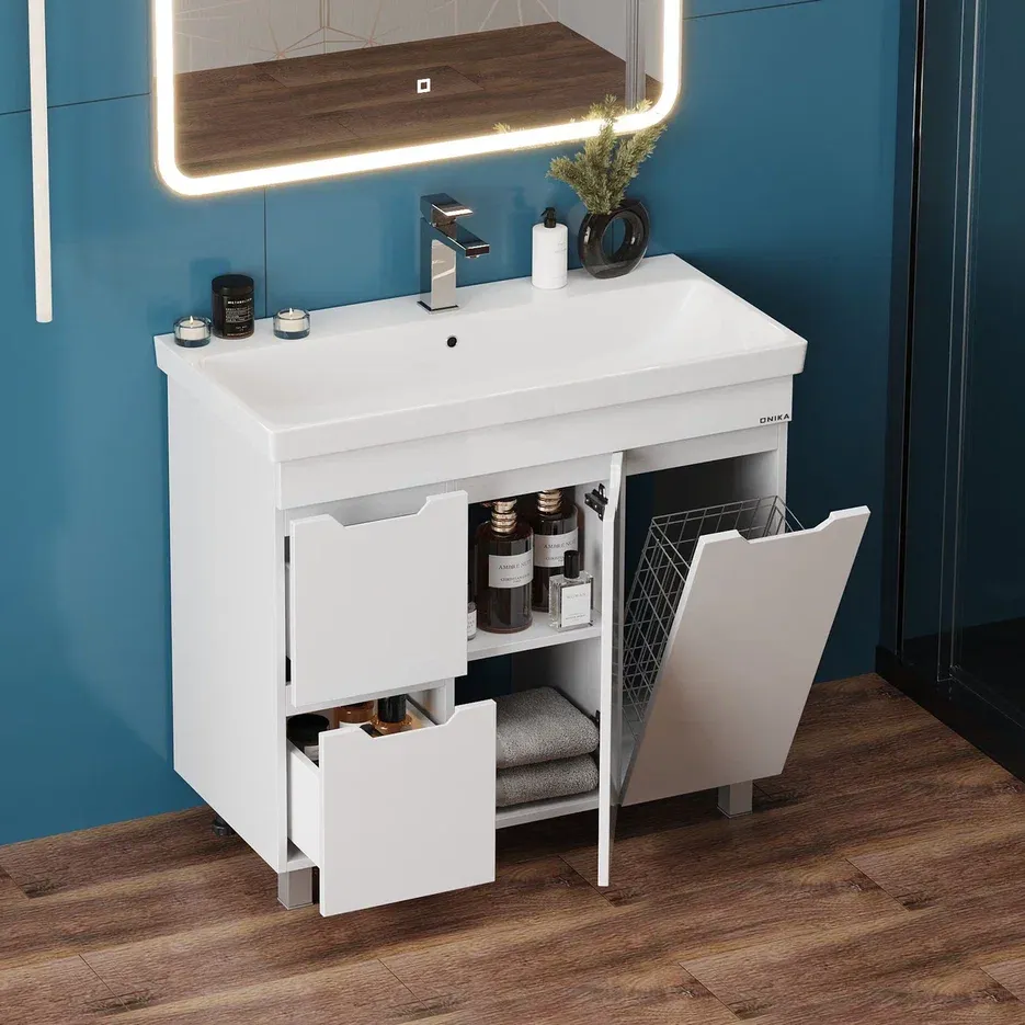 Напольная тумба Onika Айленд 109030 с корзиной 90см белый