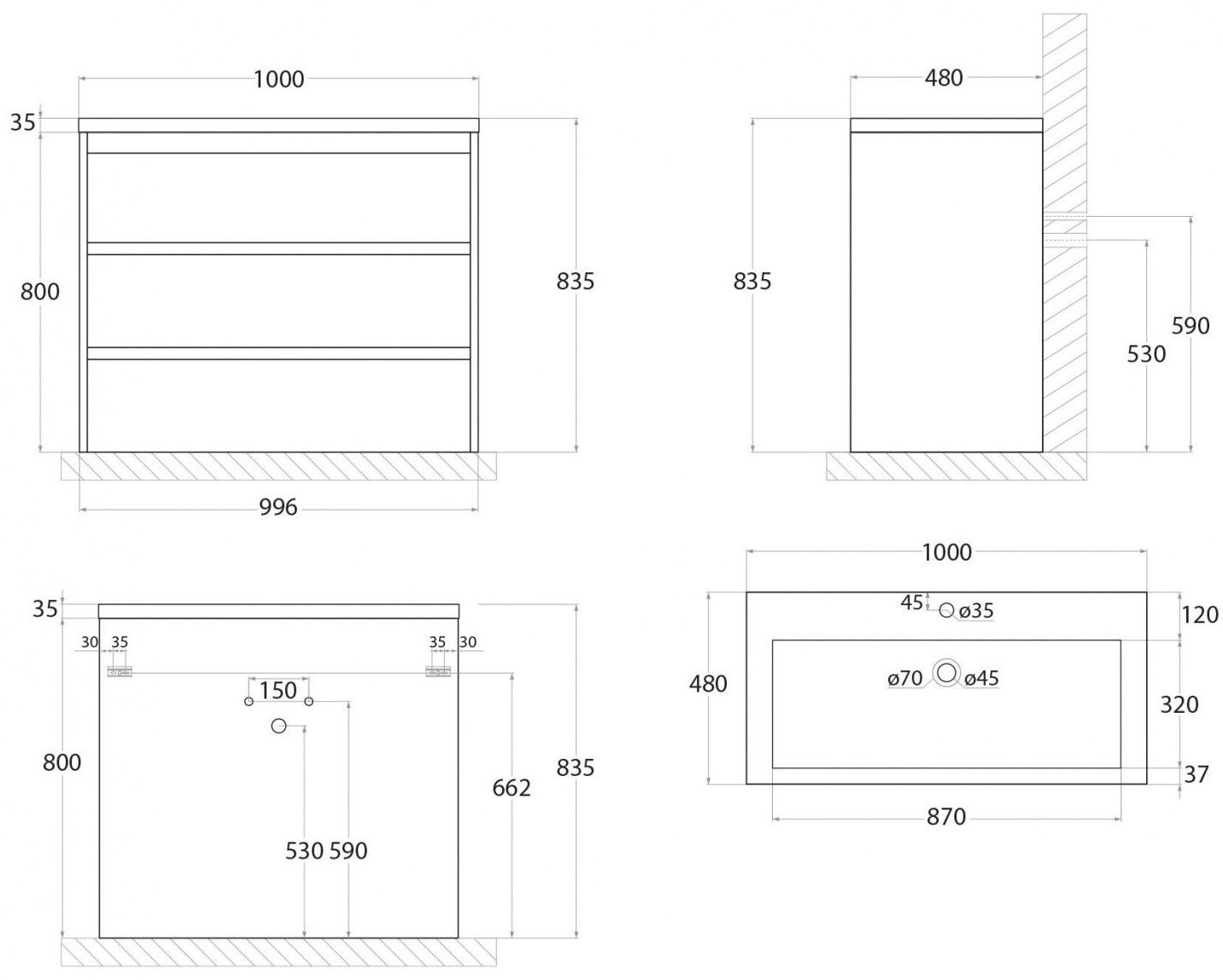 Тумба под раковину Art&Max выполнена в современном стиле и прекрасно впишется в интерьер любой ванной комнаты. Напольная конструкция обеспечивает легкий монтаж и не требует специального ремонта в помещении. Модель оснащена тремя выдвижными ящиками с доводчиками. Фасад изделия выполнен из ЛДСП.Тумба может использоваться вместе с раковиной AM-LAV-1000-MR-A.Раковина и смеситель в комплект поставки не входят и приобретаются отдельно.Особенности: