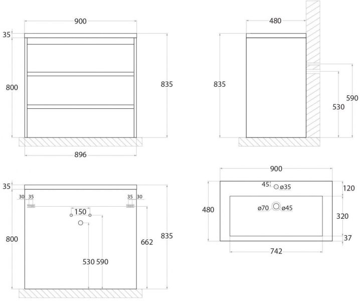 Тумба под раковину Art&Max выполнена в современном стиле и прекрасно впишется в интерьер любой ванной комнаты. Напольная конструкция обеспечивает легкий монтаж и не требует специального ремонта в помещении. Модель оснащена тремя выдвижными ящиками с доводчиками. Фасад изделия выполнен из ЛДСП.Тумба может использоваться вместе с раковиной AM-LAV-900-MR-A.Раковина и смеситель в комплект поставки не входят и приобретаются отдельно.Особенности: