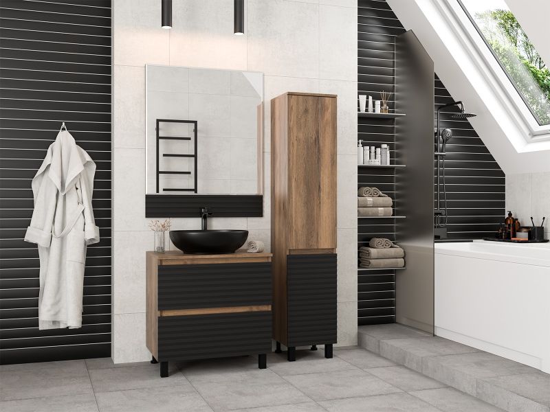 Напольная тумба под раковину – это не просто элемент мебели, но настоящее произведение искусства, которое сочетает в себе функциональность и изысканный дизайн. Изготовленная из высококачественных материалов, она гарантирует долговечность и устойчивость к воздействию влаги.Удобная система хранения позволяет размещать все необходимое для гигиенических процедур, а её продуманные размеры отлично вписываются даже в небольшие помещения. Стильные ручки и элегантные фасады придают тумбе особый шарм, а разнообразие цветовых решений позволит выбрать модель, соответствующую любому интерьеру – от классического до модерн.Мягкие линии и непринужденные формы делают тумбу неотъемлемой частью ванной, превращая её в любимое место для отдыха. Совершенное сочетание эстетики и практичности позволяет создать гармоничный и стильный интерьер, что делает напольную тумбу для ванной комнаты идеальным аксессуаром для любого дома.