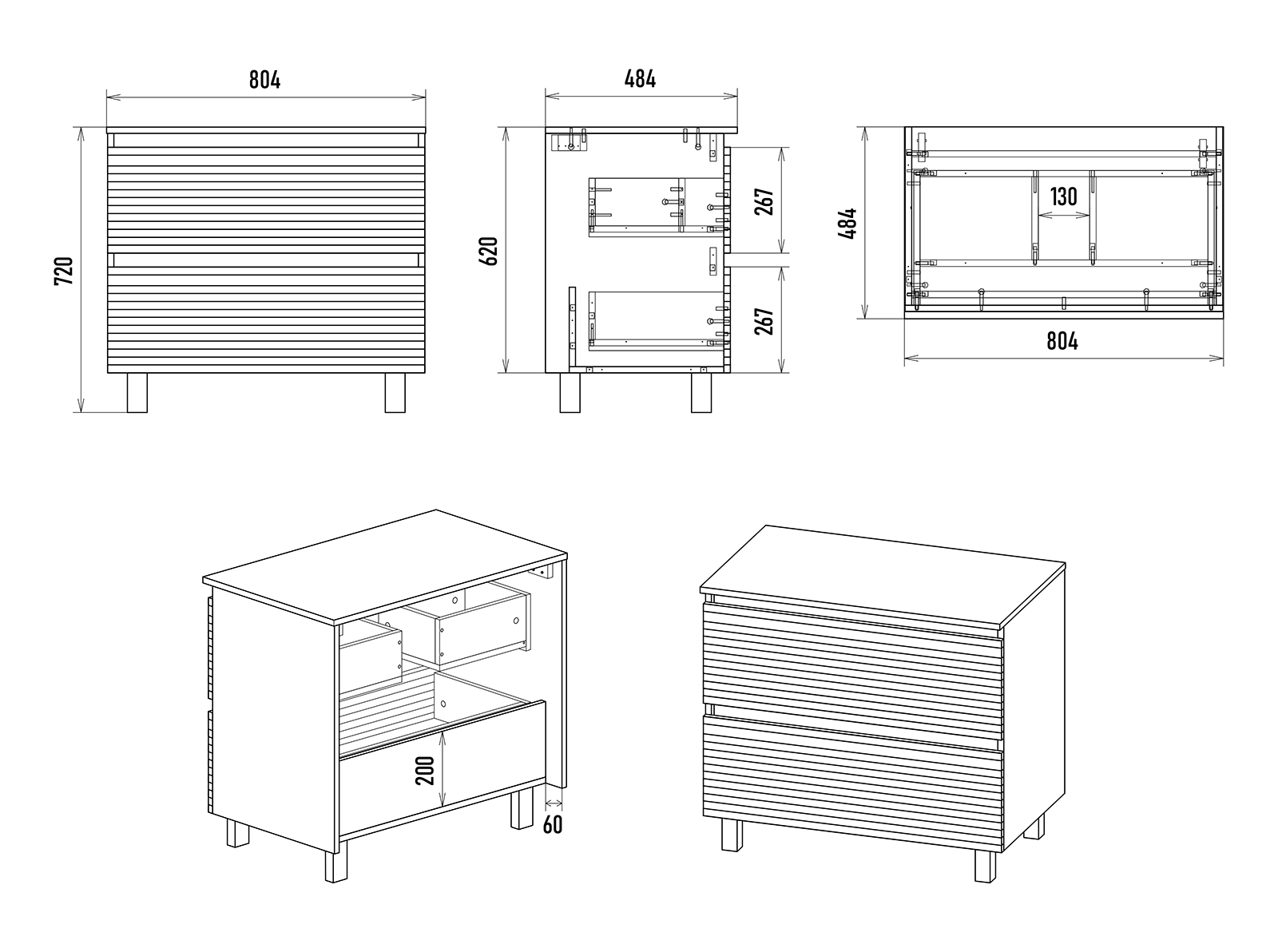 Напольная тумба под раковину Brevita Dakota DAK-07080-19/02-2Я 80см дуб Галифакс олово/чёрный