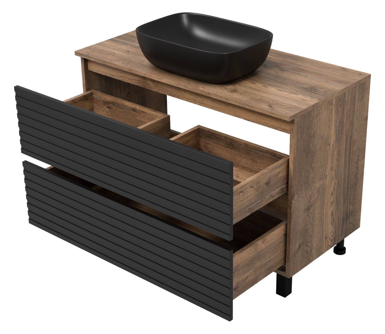 Напольная тумба под раковину Brevita Dakota DAK-07100-19/02-2Я 100см дуб Галифакс олово/чёрный