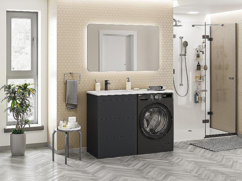 Тумба с раковиной Brevita Grafit 120 L УТ000012545 напольная под стиральную машину. Характеристики: Тумба под раковину: