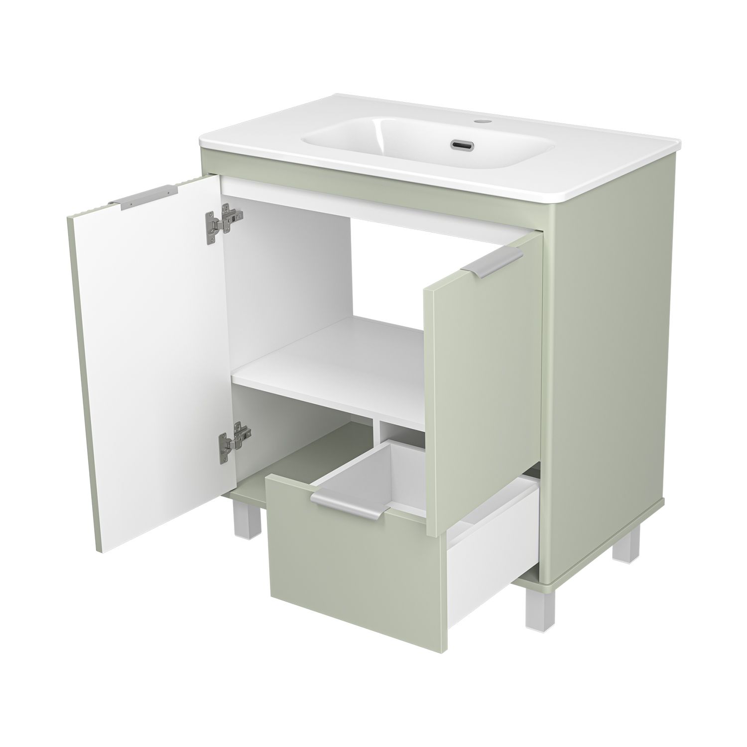 RISACCA pistachio - 80 Тумба напольная 2 дв.1 ящ. мат. эмаль + раковина
