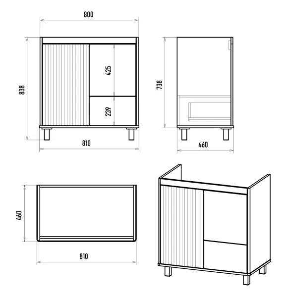 Размер тумбы, мм (ш/г/в): 804x460x738