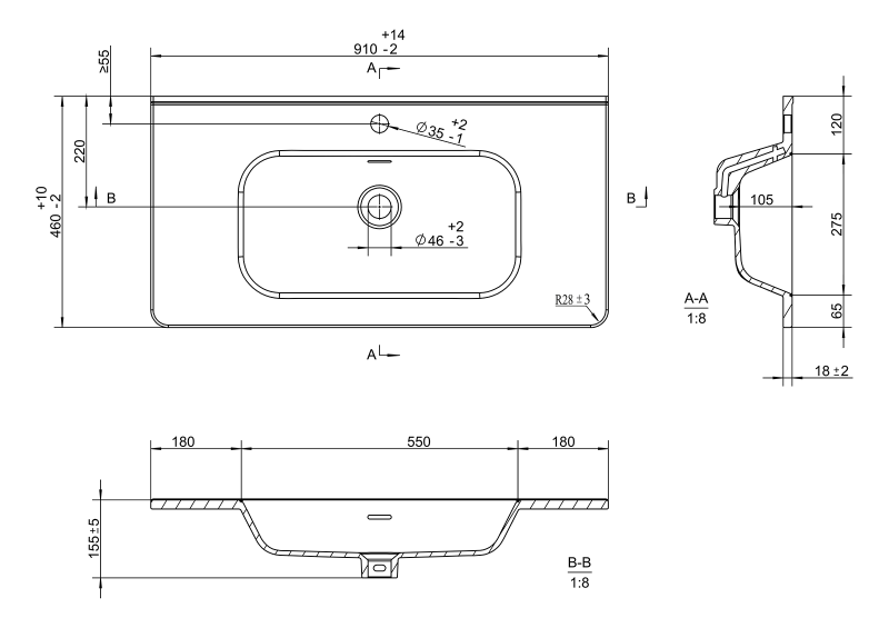 Размер раковины, мм (ш/г/в): 910x460x155