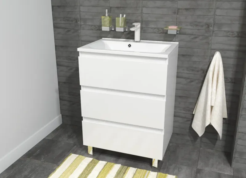 Современный дизайн серии Bali создан для ценителей минимализма. Четкие геометрические формы, бесшумное закрывание ящиков, вместительная тумба с верхним и нижним ящиками создает дополнительное пространство, где будут надежно скрыты от влаги банные принадлежности.