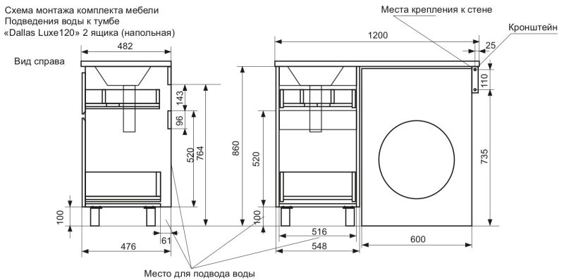 Коллекция мебели для ванной комнаты Dallas Luxe покоряет своей удивительной простой и функциональностью. Стильная лаконичная тумба, укомплектована раковиной из литьевого мрамора с удобной чашей. Стиральная машина устанавливается под столешницей, за счет чего экономит место в ванной комнате. В тумбе имеются два ящика. Нижний ящик тумбы – широкий и вместительный – предназначен для крупных предметов, а в верхнем имеется специальная организация пространства, позволяющая хранить мелкие вещи.