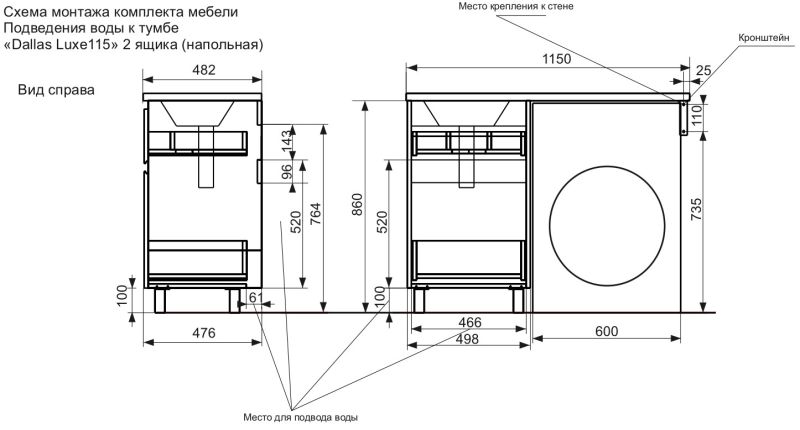 Напольная тумба под раковину Эстет Dallas Luxe ФР-00002292 Л/П 115см два ящика белый