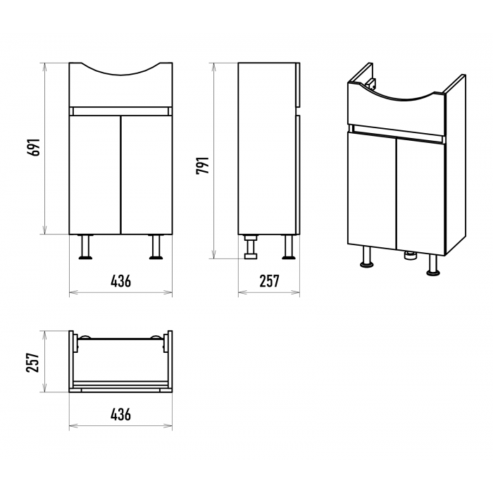 Напольная тумба под раковину Misty Амур Э-Аму01045-021Эл 43.6 см белый
