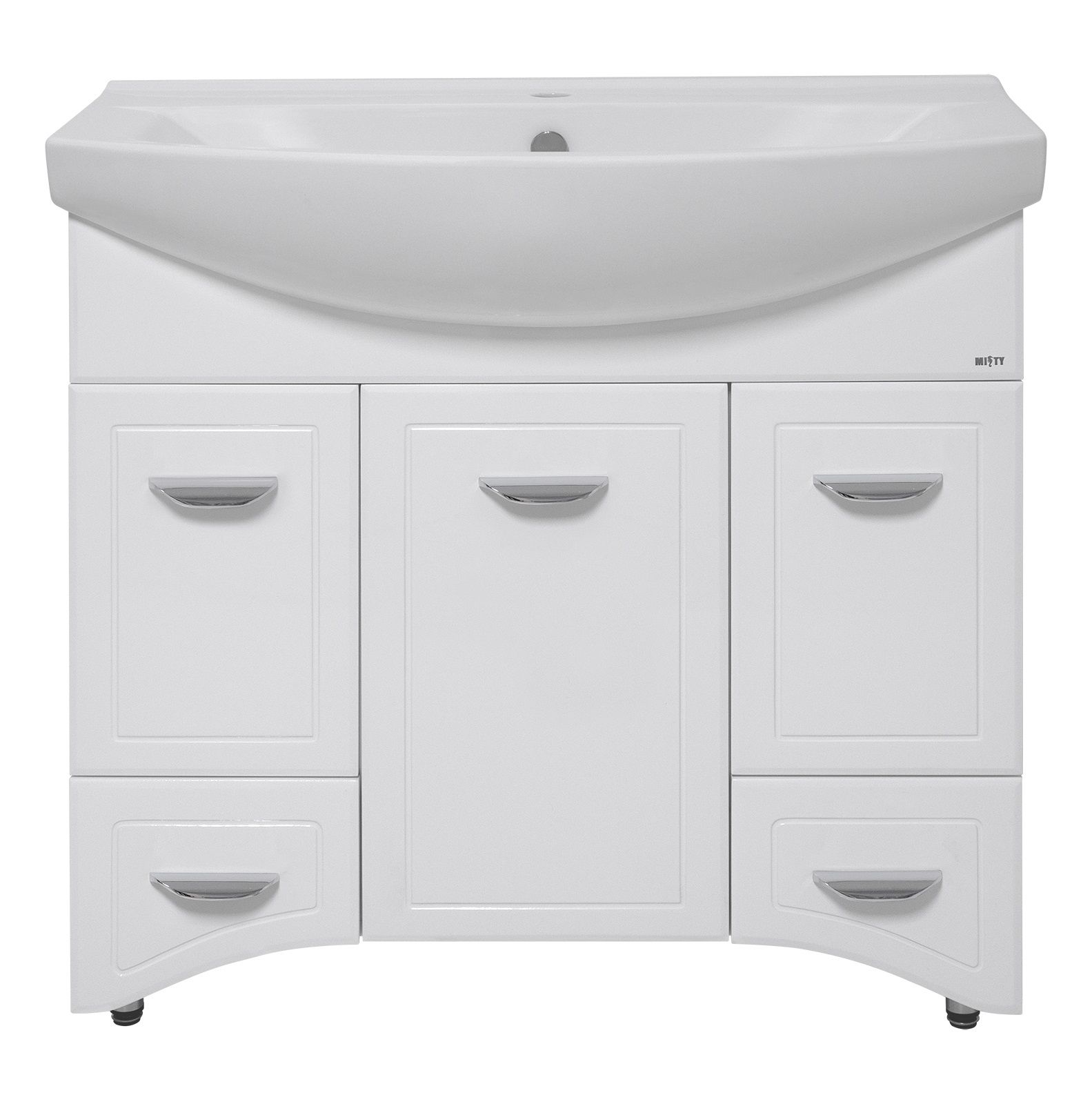 Напольная тумба под раковину Misty Дрея 85см с бельевой корзиной белый купить