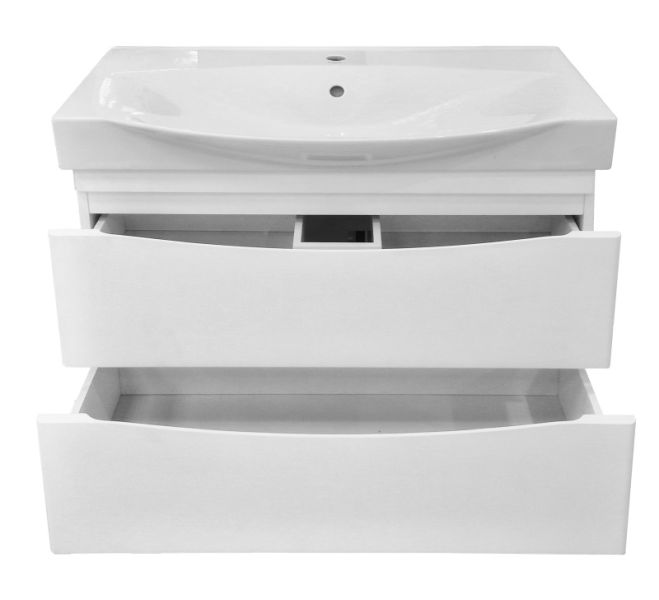 Не имея внешних украшений тумба Элвис 85 очень хорошо впишется в уточненный и лаконичный стиль больших ванных комнат в современном стиле. Белый классический цвет гладких поверхностей и вырезные проемы под ручки – особенности модели.Мебель оборудована двумя ящиками, в которых удобно хранить предметы. Мягкость открытия и закрытия ящиков обеспечивают доводчики BOYARD.Раковина Элвис 85 обеспечивает удобство использования за счёт своих размеров и широких бортиков. Ее резные контуры подчеркивают лаконичность тумбы и в комплексе создают впечатление практичности, удобства и добротности. Корпус и фасады тумбы производятся из МДФ-листа — качественного, практичного материала. Поверхности покрываются долговечной, устойчивой к износу эмалью. Раковина выполнена из высококачественного фаянса устойчивого к изменению цвета.