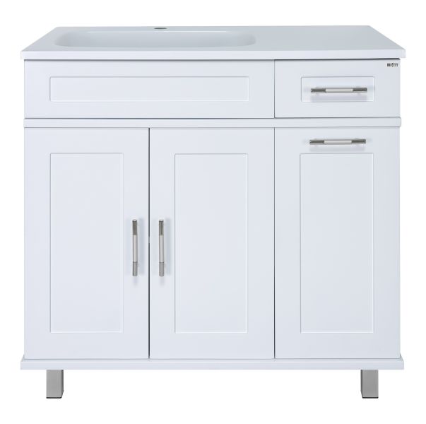 Напольная тумба под раковину Misty Купер 90см левая с бельевой корзиной белый купить