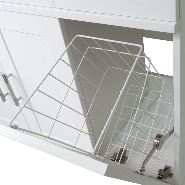 Напольная тумба под раковину Misty Купер 90см левая с бельевой корзиной белый
