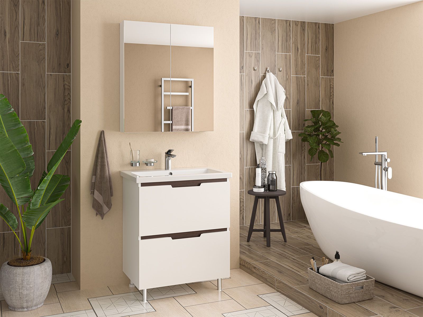 Напольная тумба под раковину – это не просто элемент мебели, но настоящее произведение искусства, которое сочетает в себе функциональность и изысканный дизайн. Изготовленная из высококачественных материалов, она гарантирует долговечность и устойчивость к воздействию влаги.Удобная система хранения позволяет размещать все необходимое для гигиенических процедур, а её продуманные размеры отлично вписываются даже в небольшие помещения. Стильные ручки и элегантные фасады придают тумбе особый шарм, а разнообразие цветовых решений позволит выбрать модель, соответствующую любому интерьеру – от классического до модерн.Мягкие линии и непринужденные формы делают тумбу неотъемлемой частью ванной, превращая её в любимое место для отдыха. Совершенное сочетание эстетики и практичности позволяет создать гармоничный и стильный интерьер, что делает напольную тумбу для ванной комнаты идеальным аксессуаром для любого дома.