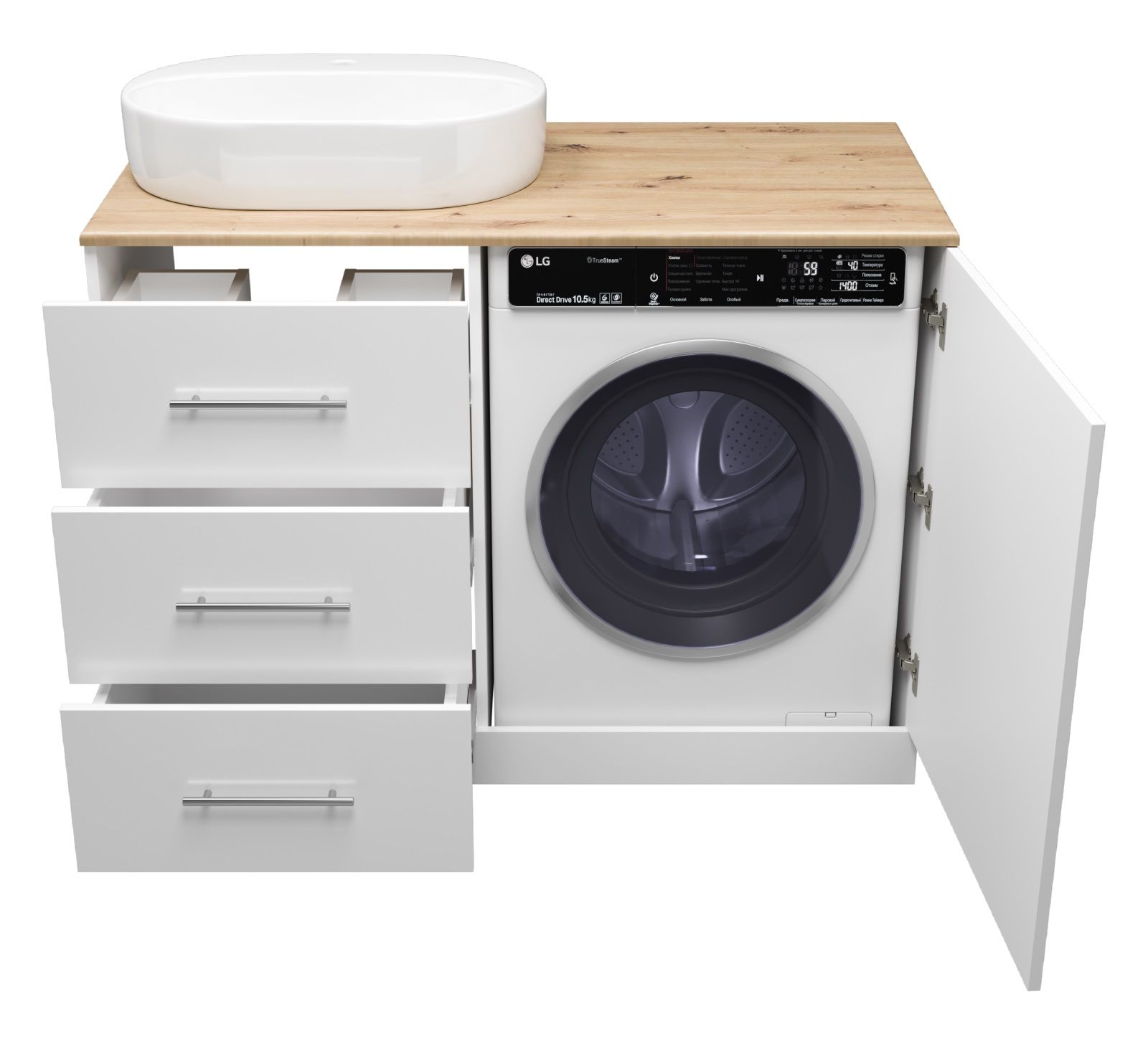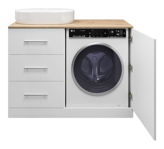 Напольная тумба под раковину Misty Респект под стиральную машину 120см левая белый/дуб Артизан