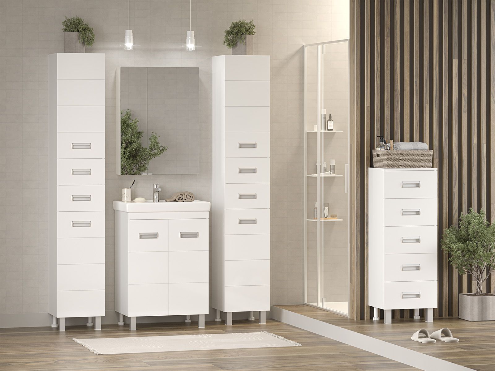 Напольная тумба под раковину – это не просто элемент мебели, но настоящее произведение искусства, которое сочетает в себе функциональность и изысканный дизайн. Изготовленная из высококачественных материалов, она гарантирует долговечность и устойчивость к воздействию влаги.Удобная система хранения позволяет размещать все необходимое для гигиенических процедур, а её продуманные размеры отлично вписываются даже в небольшие помещения. Стильные ручки и элегантные фасады придают тумбе особый шарм, а разнообразие цветовых решений позволит выбрать модель, соответствующую любому интерьеру – от классического до модерн.Мягкие линии и непринужденные формы делают тумбу неотъемлемой частью ванной, превращая её в любимое место для отдыха. Совершенное сочетание эстетики и практичности позволяет создать гармоничный и стильный интерьер, что делает напольную тумбу для ванной комнаты идеальным аксессуаром для любого дома